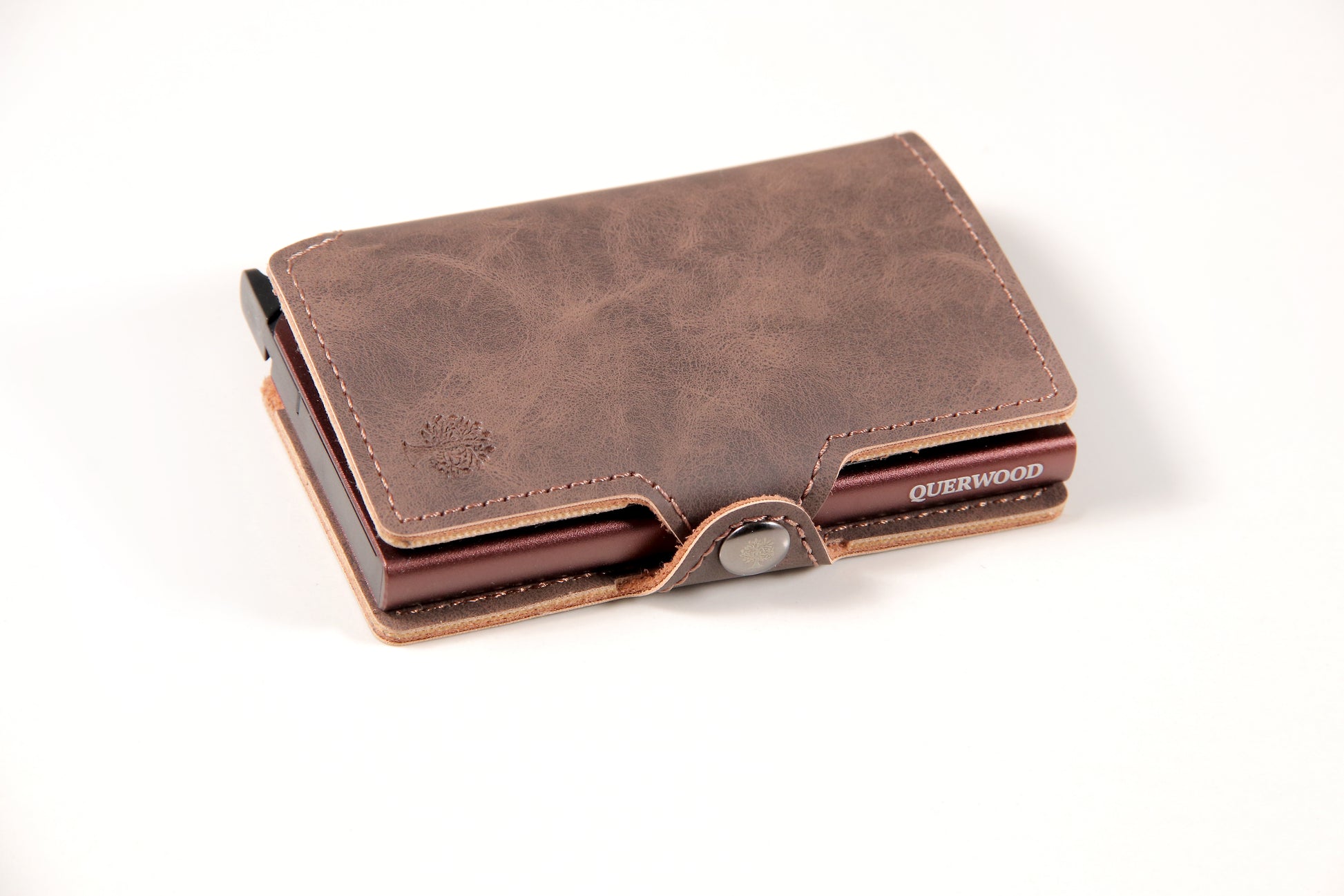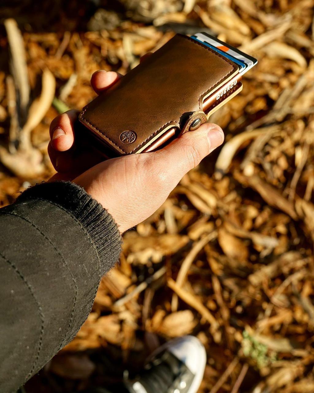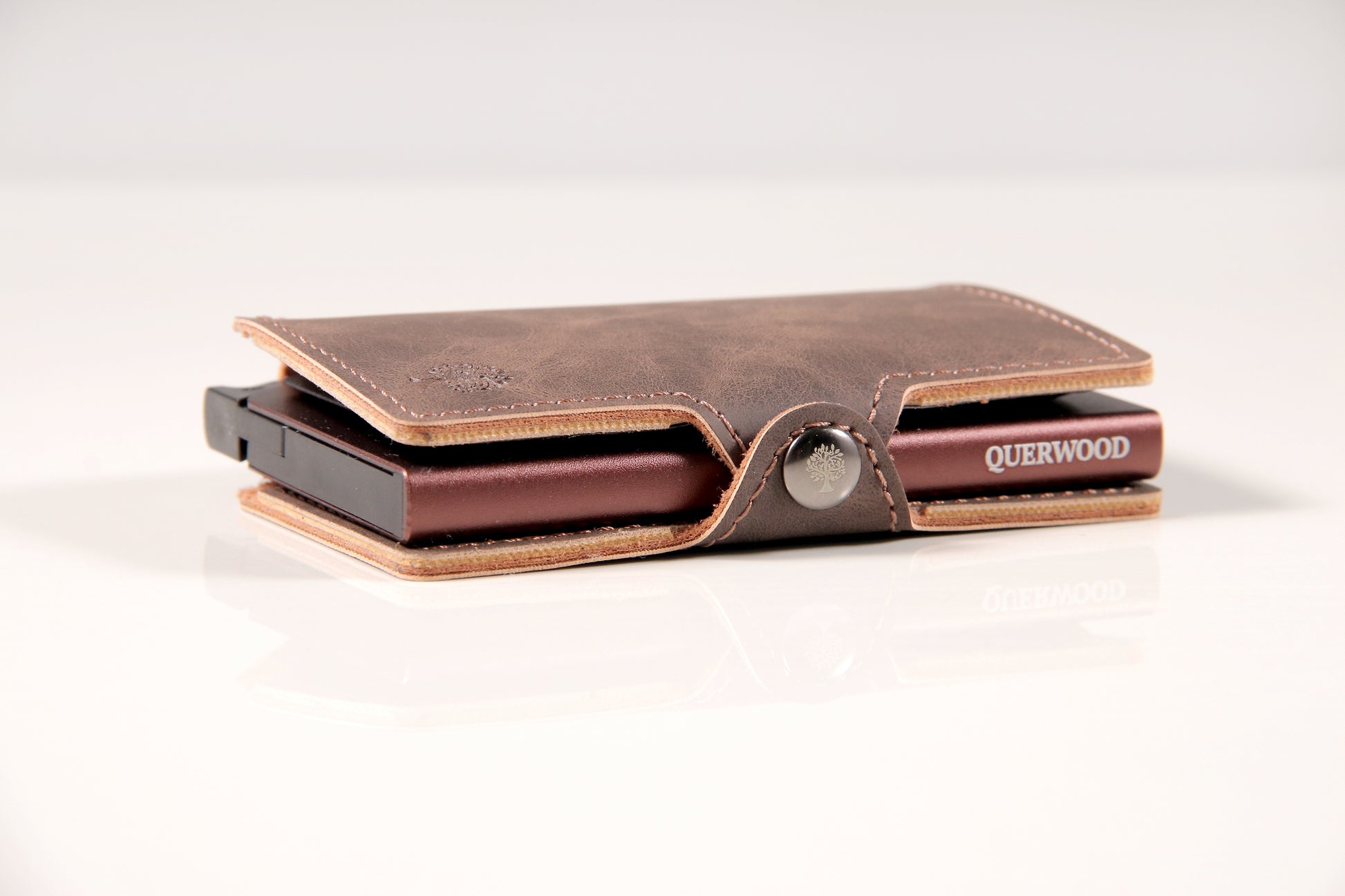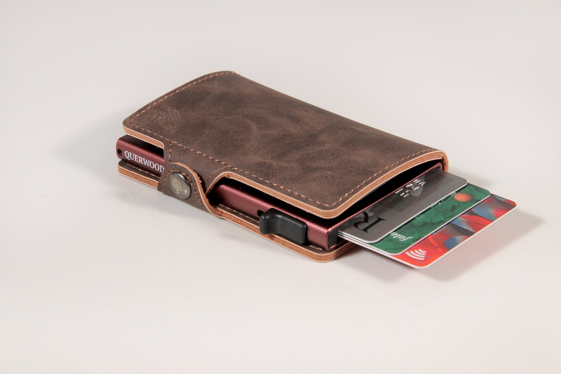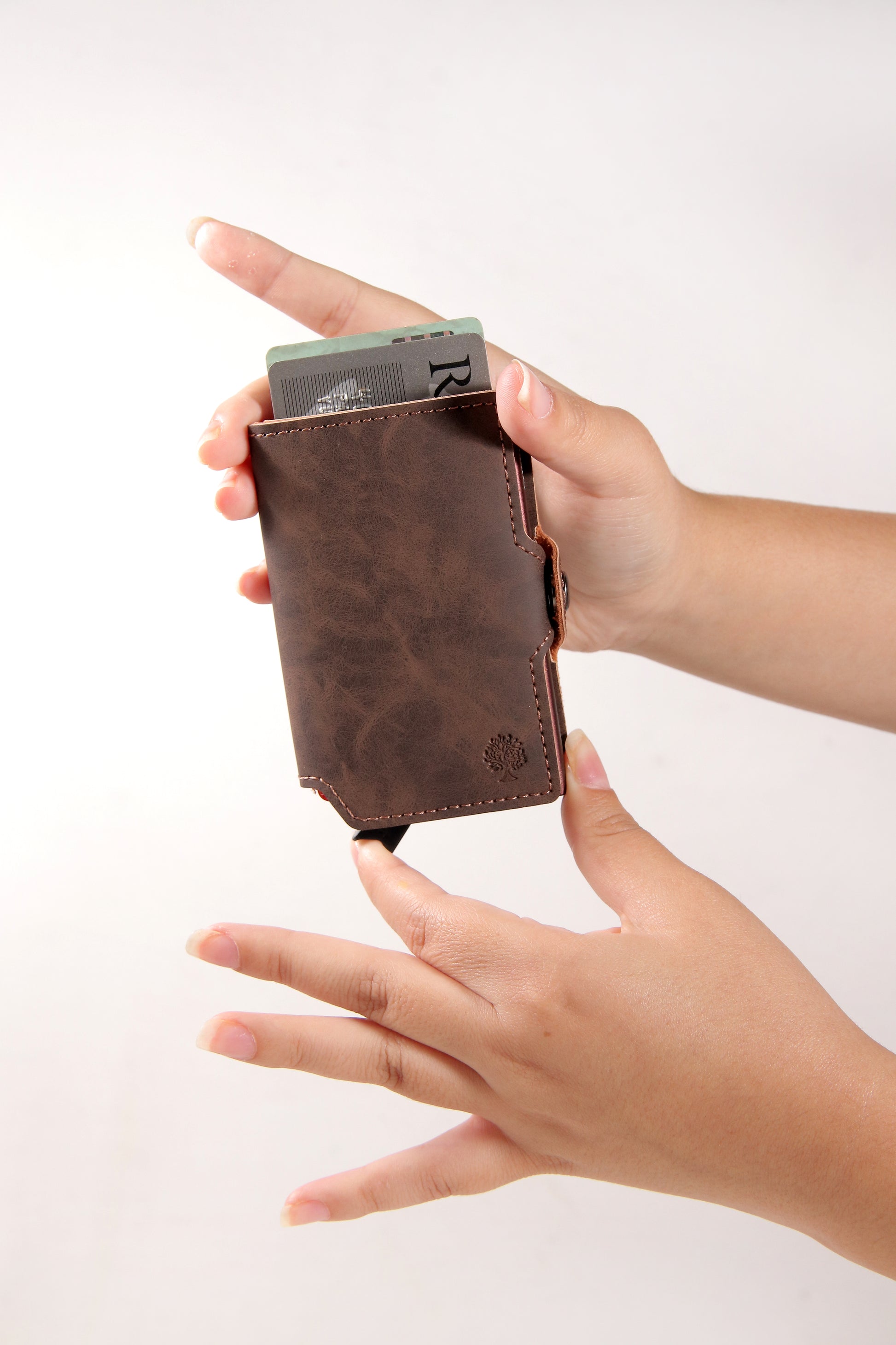 Cuenta con un sistema pusher slim (inyector de tarjetas), que permite extraer tus tarjetas de forma rápida, ordenada y con un solo movimiento. Gracias a su diseño inteligente y medidas reducidas (10 x 7 x 2 cm), es perfecta para llevar en el bolsillo sin abultar.