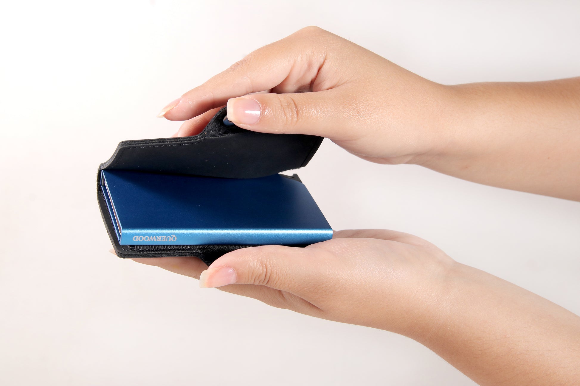 Cuenta con un sistema pusher slim (inyector de tarjetas), que permite extraer tus tarjetas de forma rápida, ordenada y con un solo movimiento. Gracias a su diseño inteligente y medidas reducidas (10 x 7 x 2 cm), es perfecta para llevar en el bolsillo sin abultar.
