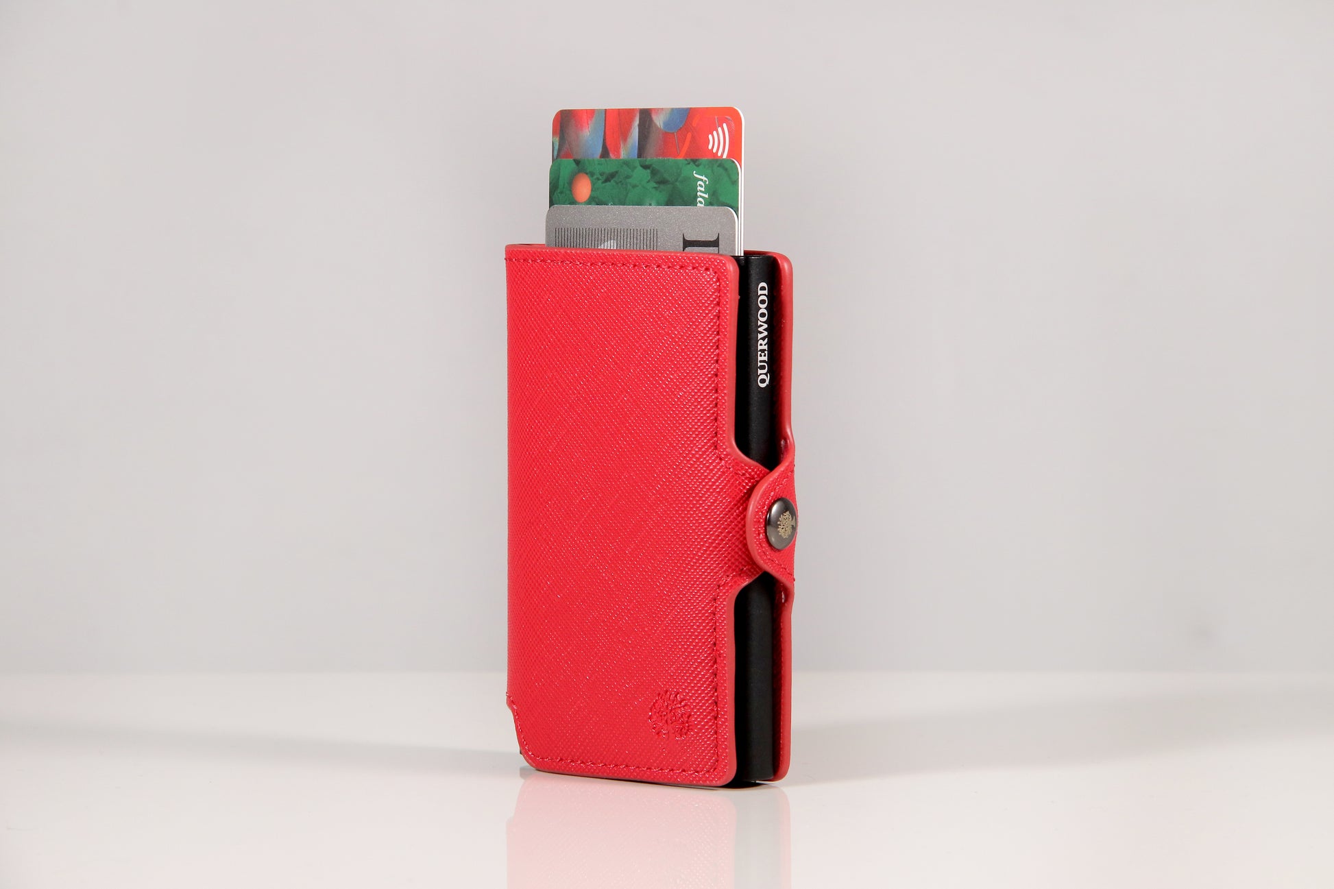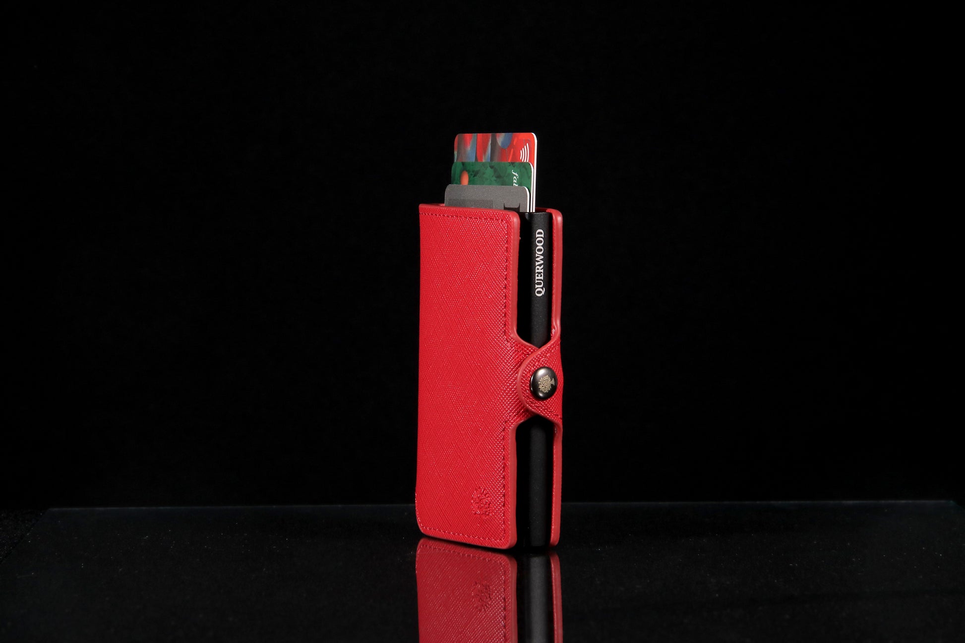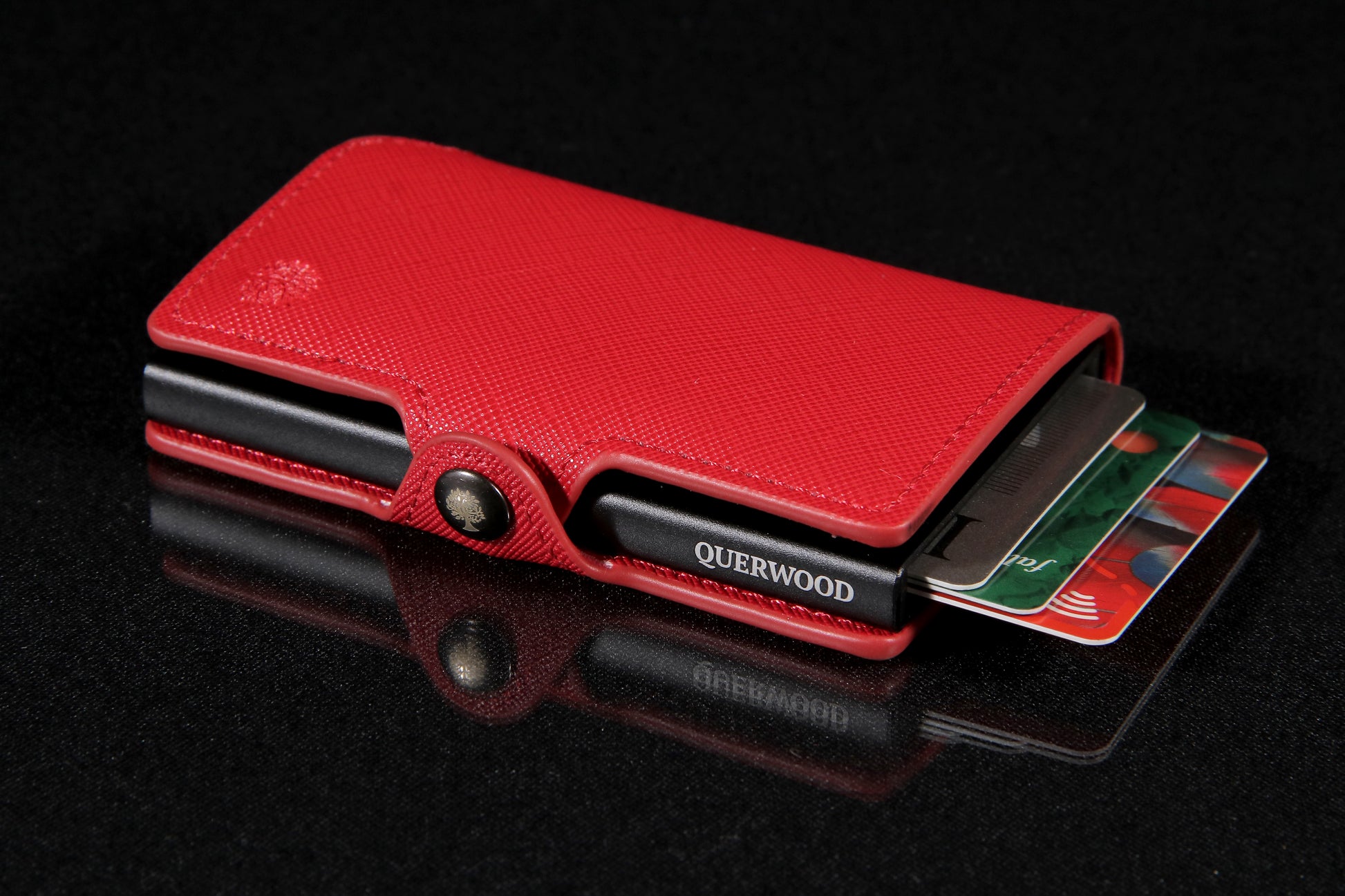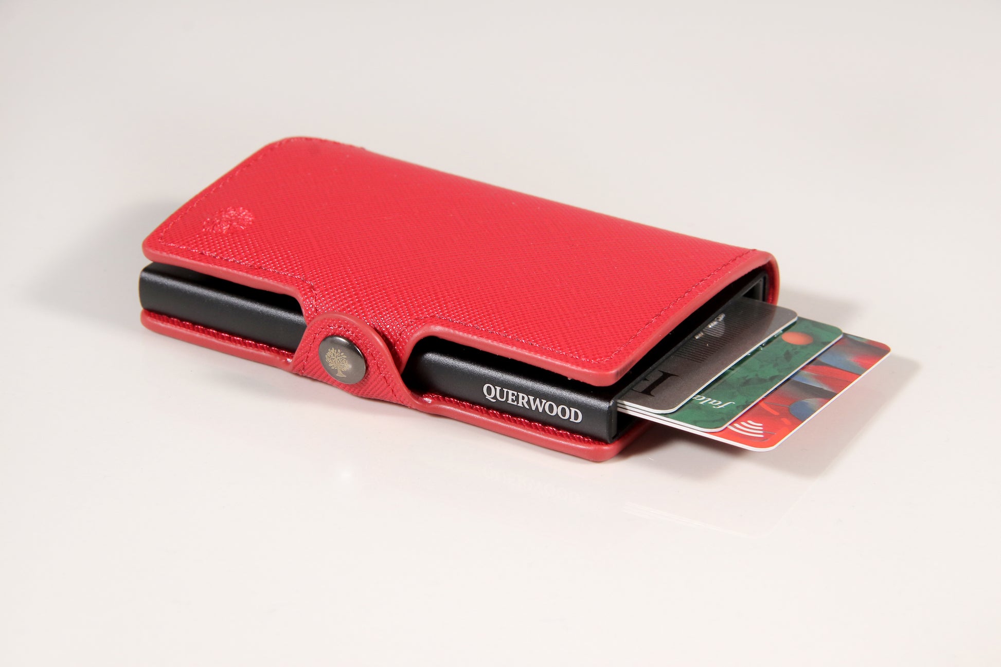 Cuenta con un sistema pusher slim (inyector de tarjetas), que permite extraer tus tarjetas de forma rápida, ordenada y con un solo movimiento. Gracias a su diseño inteligente y medidas reducidas (10 x 7 x 2 cm), es perfecta para llevar en el bolsillo sin abultar.