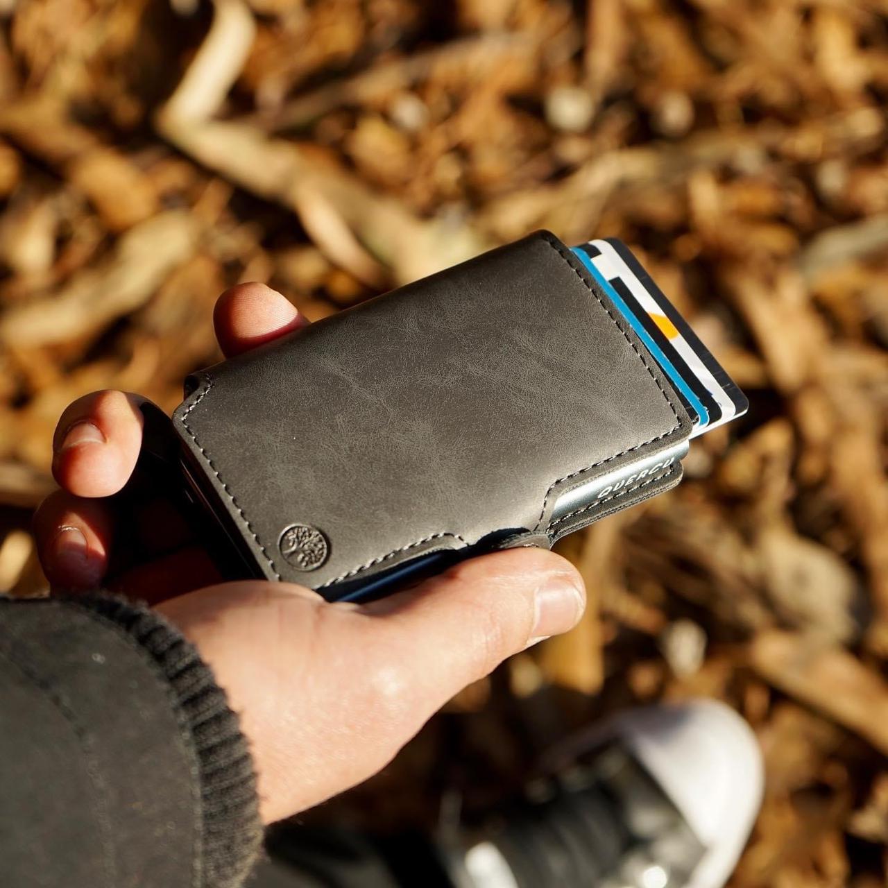 Cuenta con un sistema pusher slim (inyector de tarjetas), que permite extraer tus tarjetas de forma rápida, ordenada y con un solo movimiento. Gracias a su diseño inteligente y medidas reducidas (10 x 7 x 2 cm), es perfecta para llevar en el bolsillo sin abultar.